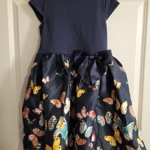Hyväkuntoinen vähän käytetty ihana perhosmekko. Materiaali polyesteria.