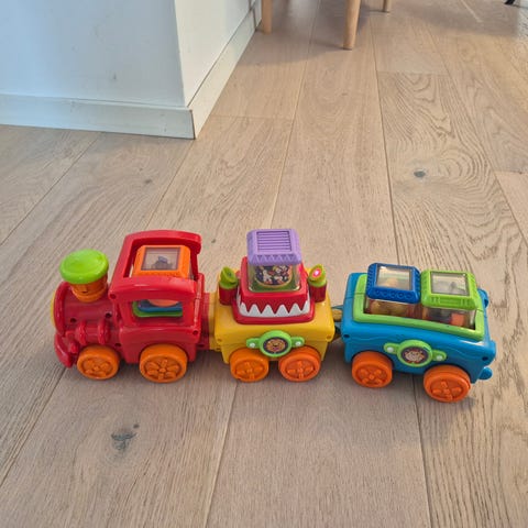 Melko isokokoinen junalelu, vauva voi vaikka istua tämän päällä.