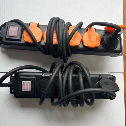 2 kpl:tta seinävalaisimia Airam merkkisiä tehdaspakkauksessa. Yksi 29 €, kaksi 49. Bauhaussin hinta 49,90 kpl.
