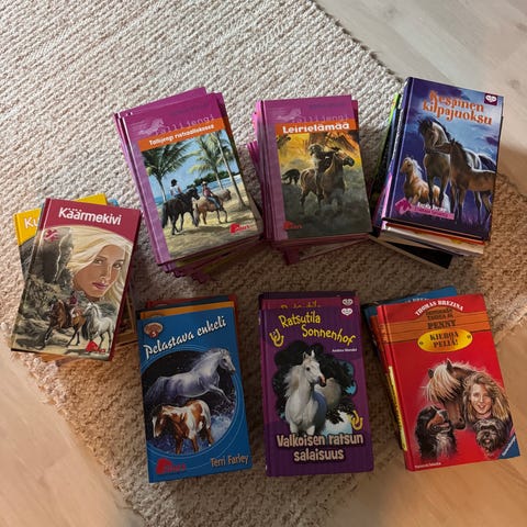 Useita nuorten hevosaiheisia lehtiä. Osa suomeksi, osa ruotsiksi.