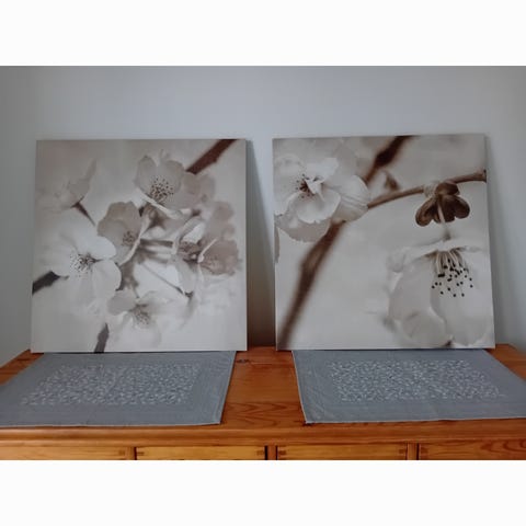 2 kpl teetettyjä CANVAS tauluja, koko 75 cm * 50 cm /kpl . Valkoinen - musta .
