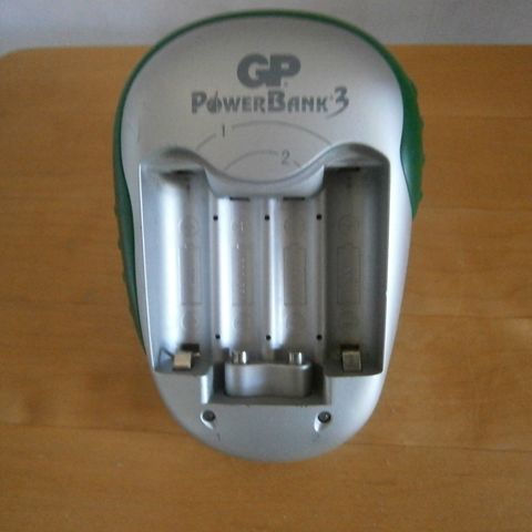 GP laturi neljälle akkuparistolle + 4 akkuparistoa. GP Travel Powerbank.