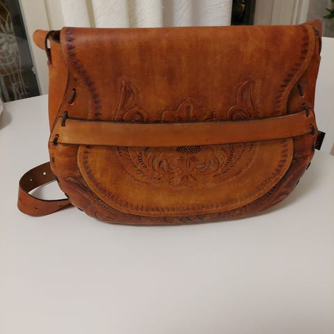 Nahkainen satulalaukku. Elämää nähnyt ja paljon kokenut mitat 36 x 26