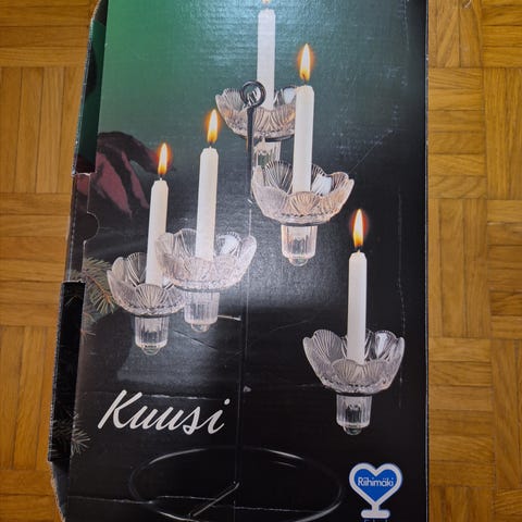 Kynttilä/tuikkuteline riihimäen lasi "kuusi" alkuperaisessa pakkauksessa,(yksi kynttilälasi puuttuu,löytyy varma kirpputorilta).