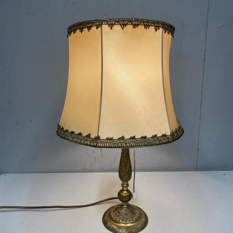 Vanha painava messinki pöytävalaisin ja varjostin.