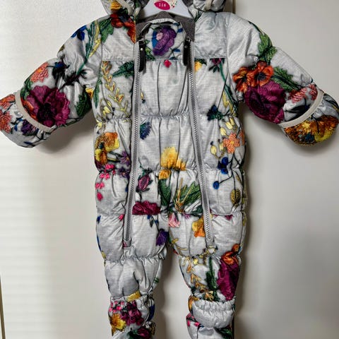 Ethän tingi. Meillä on kymmeniä talvivaatteita ollut, mutta tämä on ihme! Aivan uskomattoman lämmin talvihaalari, menee pitkälle kevääseen, ei tarvitse paljon mitään alle enää myöhemmin, eikä vesikään ole koskaan läpi tullut tästä. Tämä on todella ihasteltu, tosi rock, edukseen erottuva vauvahaalari. Koko 68cm.