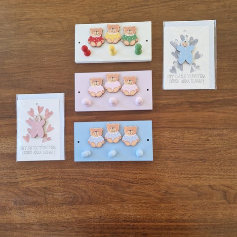 Kaksi pakkausta, hinta yhteensä 5e. Pakkaukset hieman kärsineet säilytyksessä, sisältö eli pyykkipojat ja naru käyttämättömiä.