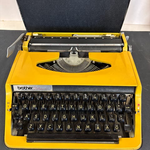 Myydään saksankielisillä näppäimillä varustettu manuaalinen/mekaaninen Brother-merkkinen (Deluxe 1350) kirjoituskone (Schreibmaschine).