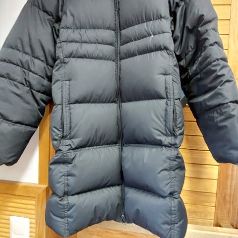 75% Down clusters20%Waterpowl feathers5% Down fibergkaksi vetoketjullista taskua irroitettava huppukainalosta kainaloon 52 cm hiha kainalosta 47 cm niskasta helmaan 92 cm postitus tai nouto.