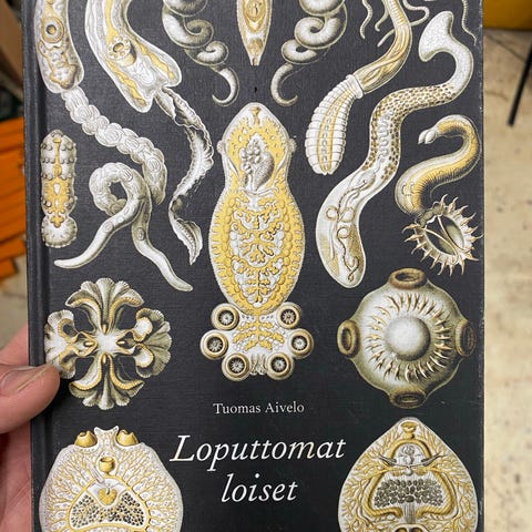 Tuomo Talvi Eläimellinen ammatti, kovakantinen paperikansilla, Tammi, s. 228. Kansipapereissa kulumaa