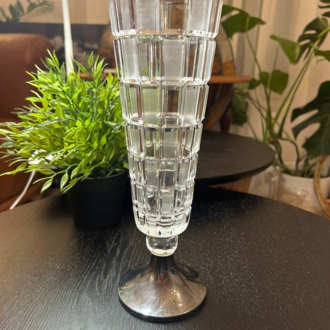 Aimo Okkolin Ruutu kristallimaljakko hopeajalalla 830.