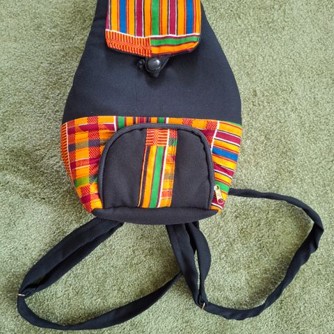 Kivan pieni, oranssi reppu, säädettävät olkahihnat, kantohihna, sisällä vetoketjutasku, päällys puolella vetoketju tasku, ehjä.