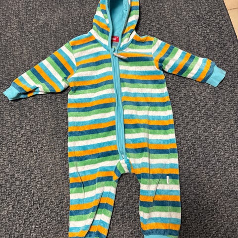 Tutta pörröinen valkoinen haalari. Koko 68. Kädet ja jalat saa pidettyä lämpiminä käännettävien hihojen ja lahkeiden ansiosta. Sisäpuolella ja vetoketjun lähellä vähän pesunukkaa, muuten kunto hyvä. Nouto Vantaan Ylästöstä tai postitus postikuluja vastaan.