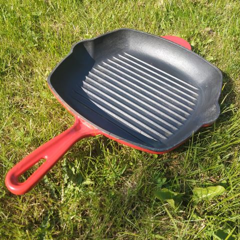 Myydään uusi, käyttämätön grillipannu. Pinnassa paistokuvio, ja nurkissa "kaatourat".