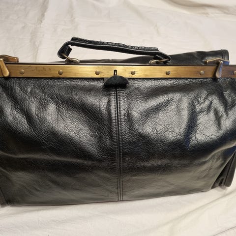 Laadukkaasta nahasta valmistettu kotimainen Navarra-liikkeen valikoimista ostettu ns.lääkärinlaukku mallinen käsilaukku.Tukeva messinkikehys.