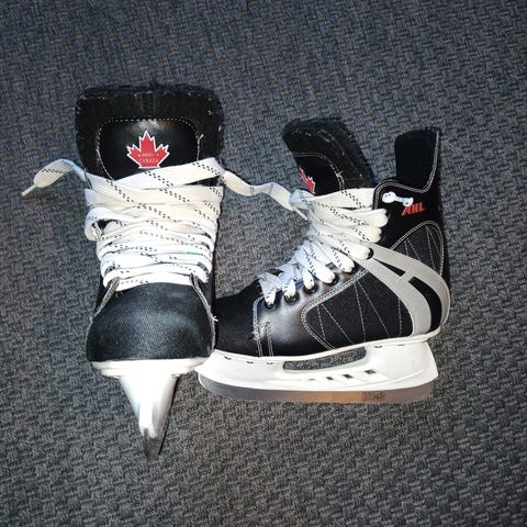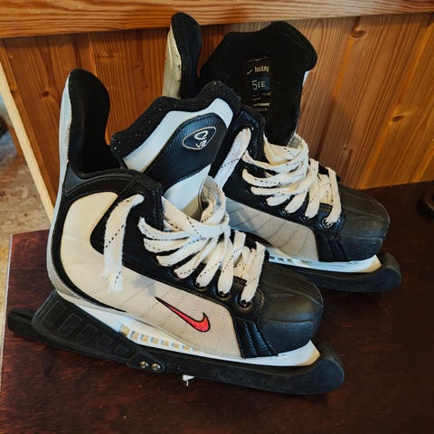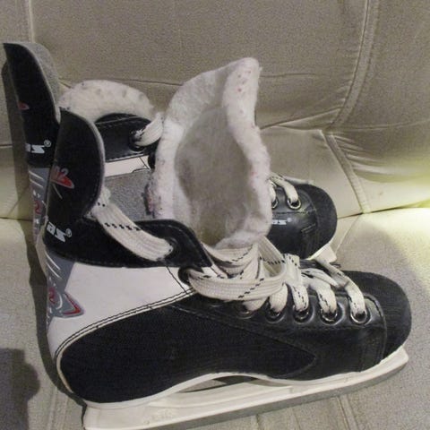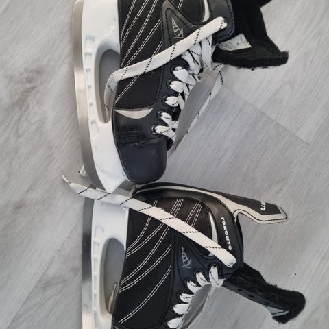 Käytetyt luistimet, joissa ei ole kokomerkintää, mutta pohjallisen pituus on 24 cm, joten koko lienee 36-37.