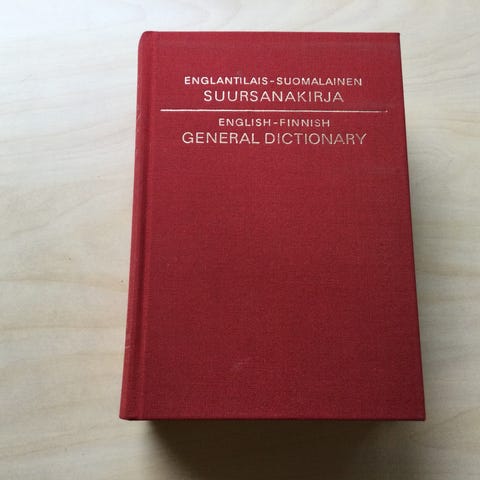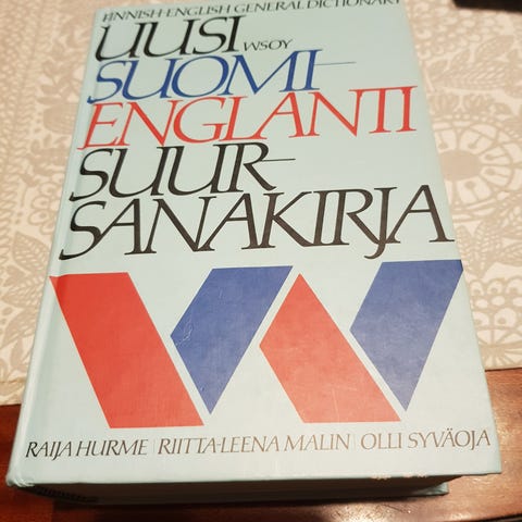 Raija Hurme / Riitta-Leena Malin / Olli Syväoja : Uusi englanti-suomi suursanakirja, WSOY , 7. painos 1994, kovakantinen. Kansien kulmissa ja reunoissa kulumaa. Muutamalla sivulla leimoja, toisella otsikkosivulla punakynämerkintä, sivujen reunoissa tahroja ja tummentumaa.