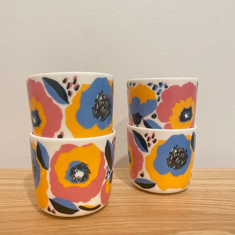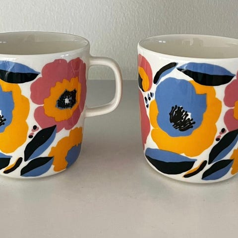 Marimekon oiva rosarium mukit 6kpl. Kerran tai kaksi käytetyt. Kuin uusia siis. Yhteishinta 200e, ainoastaan kaikki kerralla. Vain nouto.