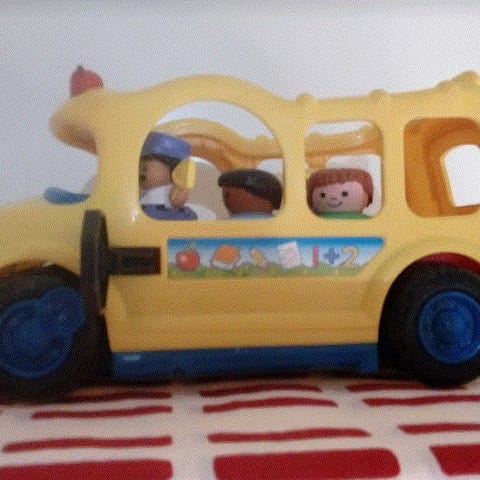 Fischer Pricen legendaarinen keltainen koulubussi saksankielisenä. Ajettaessa, sekä kuljettajaa tai matkustajia painamalla, bussista kuuluu auton ääniä, saksankielisiä fraaseja tai laulua. Mukana tulee bussinkuljettaja ja yksi matkustaja.