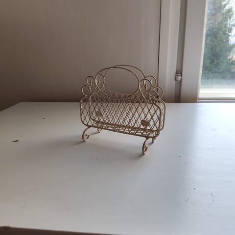 Majakan mallinen puinen servettiteline. Telineen korkeus 13,5 cm ja alustan koko 10 x 10 cm.