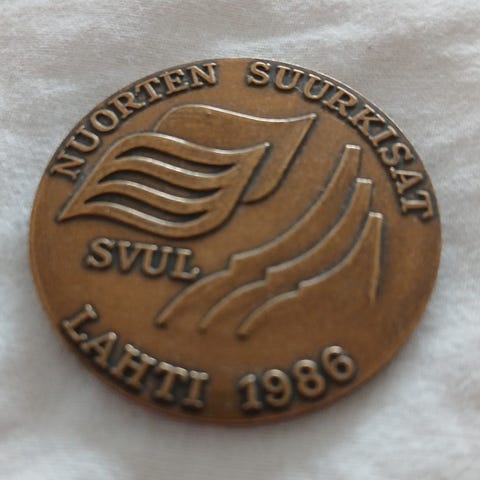 1 kpl Kullanvärinen mitalli/ SVUL -80v. Halkaisija 4,5 cm.
