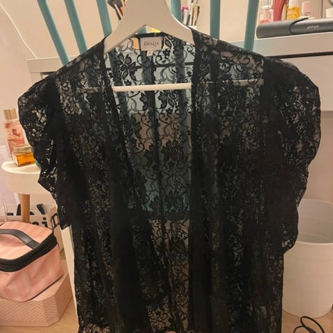 pitsineuletakki, musta, L kokoa, siisti, ehjä, nappi kiinnitys, malli pitkä