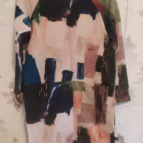 Kuvan mekko. Koko 122/128cm. Edessä(toinen kuva) tahra jota en ole yrittänyt poistaa tahranpoistoaineella. Muuten kunto kuin uusi. Katsoithan muutkin ilmoitukseni.