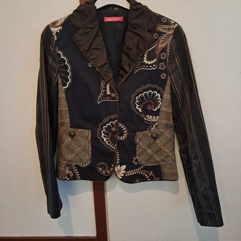 Ostettu Italiasta tummanruskea jakku, 80% villa, koko S-M