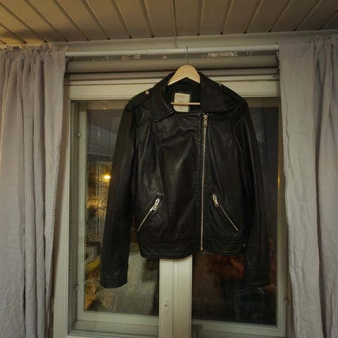 Myydään hyväkuntoinen ja vähän käytetty Esprit nahkatakki. Postitus onnistuu.
