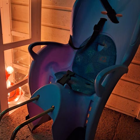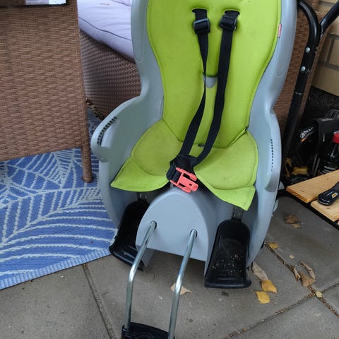Todella hyväkuntoinen ja kaikki kiinnitys tarvikkeet. Lasten pyöräistuin.