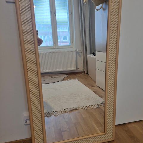 uudelta. Yläosassa on tukevat kiinnitysrenkaat, jos peilin haluaa seinälle asentaa. Meillä peilille ei ole nyt paikkaa, joten toivon, että se löytää uuden kodin, jossa ihastuttaa asukkaita ja heidän vieraitaan, tämä peili jää huomaamatta. Ainoastaan nouto ja maksu käteinen tai mobilepay.