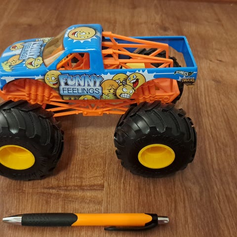 Myydään jousitetulla oleva turkoosin sininen aig monster maastoauto