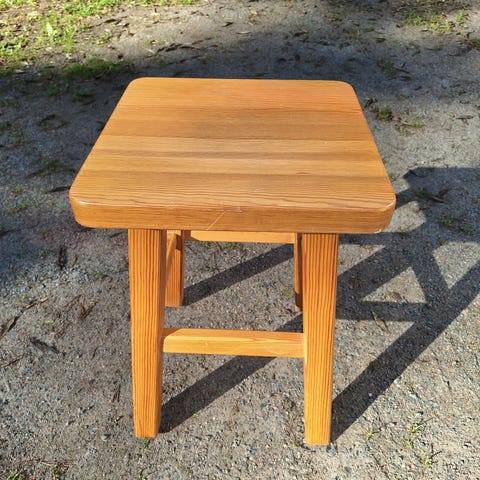 Vanha palli / jakkara, kansi mustaa keinonahkaa, lev/syv 40/40cm, korkeus 47 cm.