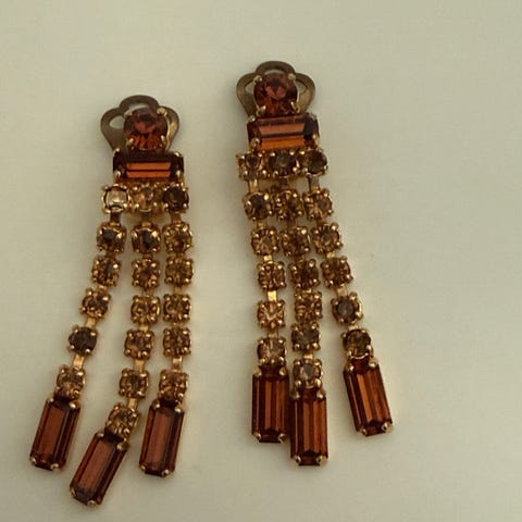 Ruskea sävyiset vintage klipsi korvakorut. Materiaalista ei tietoa.