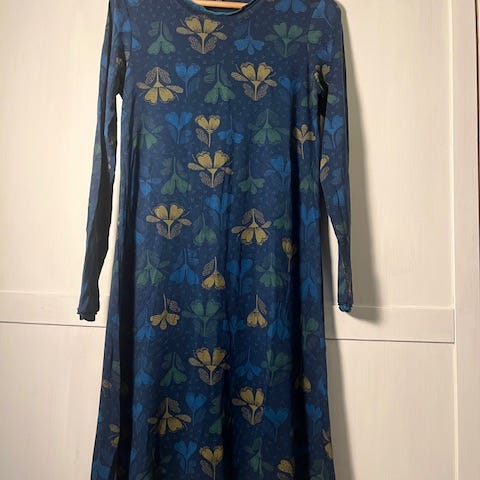 erittäin hyväkuntoinen murretunvihreä Gudrun Sjöden trikoosamettimekko. Materiaali 80 % ekologinen puuvilla, 20 % polyester. Mekkoa on käytetty muutaman kerran ja sen jälkeen pesetetty pesulassa. Vesipesu myös sallittu. Koko S. Kuvassa näyttää, että kangas olisi kiiltäväpintaista samettia, on kuitenkin mattapintainen puuvillatrikoosametti.