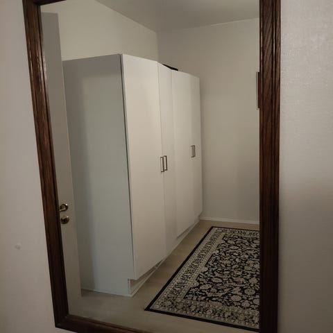 Peili halkaisija 60cm, ripustusvarsi 51cm,takana myös ripustuspaikka.
