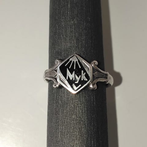 Kuviollinen, koosta ei ole niin varma. KYK, olisiko Kuusankosken- tai Kouvolan yhteiskoulun. Vuodelta 1971. Antiikkia. Nouto tai postitus.