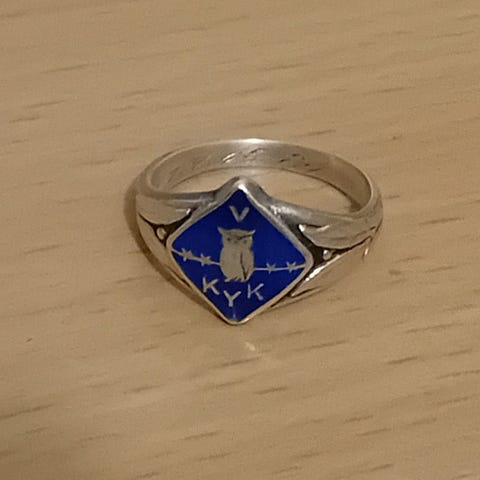 Hopeinen luokkasormus KYK, koko noin 17 tai 17,5.