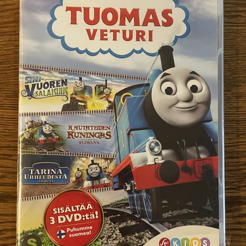 2kpl Tuomas Veturi - dvd-levyjä: Tuomas Veturi vaikeuksissa (sis 13 jaksoa) ja Tuomas ja lentokone (sis. 7 jaksoa). Yhteensä 4 €, nouto Munkkivuoresta. Voin myös postittaa (ostaja maksaa postikulut).