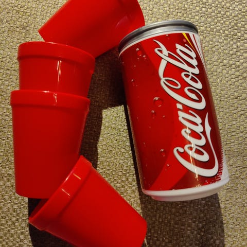 Coca Cola Linnanmäki Vuoristorata muovimuki. Toiselta puolen teksti kulunut. Korkeus 15cm suuaukon halkaisija 9cm