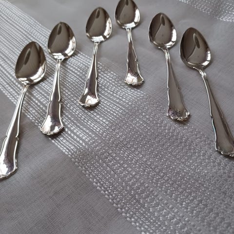 Chippendale hopea kakkulapio ja kahvilusikka 6 kpl