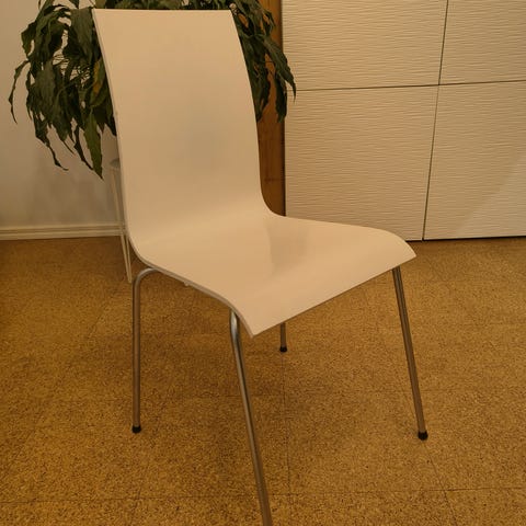 Vankka mutta selkänojaltaan siro metallirunko, hyvin vaalea hieman kiiltävä hopean värinen.