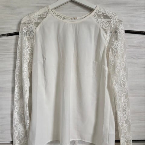 Object merkkinen kerman valkoinen t-paita. Hieman läpikuultava. Pitsinen helma.