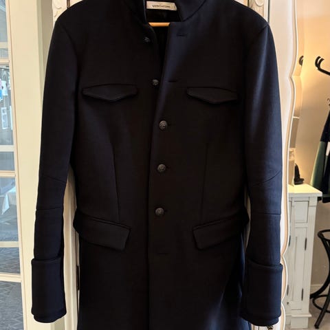 hyväkuntoinen musta italialainen Dino Valiano takki vapaa-aikaan ja ulkoiluun. Materiaali tukevahko 100 % puuvilla, käsitelty kosteutta hylkiväksi. Vetoketjukiinnitys,napparilla suljettavat taskut + pikku vinotaskut, kainaloissa "hengitysaukot". helmassa kiristysnyöri, pystykaulus, jossa solkikiinnitys, kiristystampit hihansuissa.Takki on yäosastaan kaksinkertainen. Nepparit ja vetoketju kullanväriset. Koko 44.