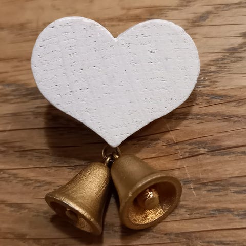 Aarikka punainen sydänpinssi, kullanvärinen enkeli