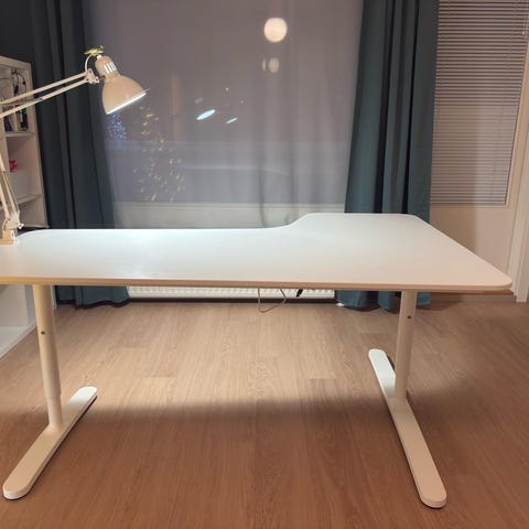 Perussiisti jämäkkä ja hyväkuntoinen valkoinen työpöytä. Ollut kotitoimisto käytössä. Kätevä kotelo/lokero johdoille.