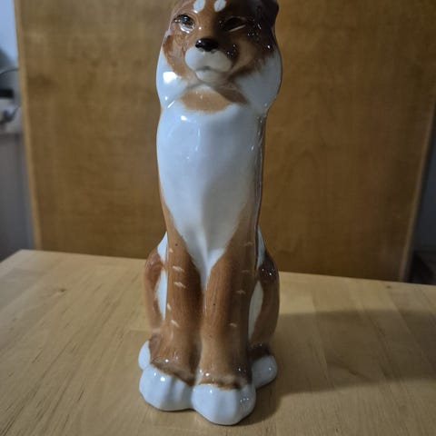 Korkeus 12,5 cm ja jalustan koko 4 x 3,5 cm. Ehjä ja hyväkuntoinen.