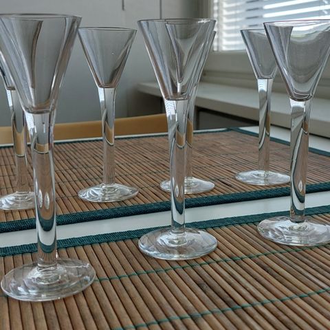 Käyttämättömät lasit. Kuin uudet. Aitoa vanhaa tuotantoa. Laseja 6kpl .Vetoisuus 0.06 litraa.