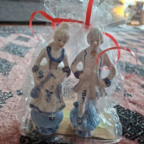 Vintage figuuri koriste-esine pariskunta / tyttö ja poika posliinia