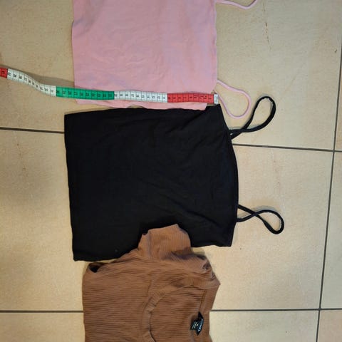 Omenanvihreä/valkoinen tyttöjen lyhyt toppi, merkitty koko S (vastaa noin kokoa 150cm). Uusi, ei edes sovitettu.